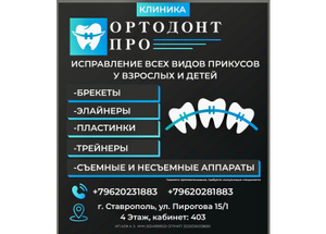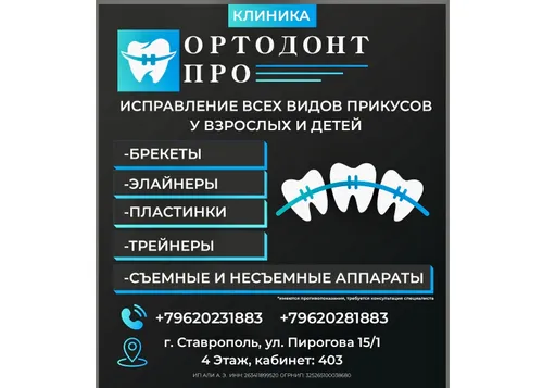 Компания ОРТОДОНТ ПРО расположена в Ставрополе на улице Пирогова, 15/1. Мы предоставляем полный спектр ортодонтических услуг, включая консультации, диагностику и лечение. Наша команда опытных специалистов гарантирует высокий уровень обслуживания и индивидуальный подход к каждому клиенту. Мы используем современные технологии и материалы, чтобы обеспечить максимальный комфорт и эффективность лечения. Наша цель — помочь вам достичь здоровой и красивой улыбки!